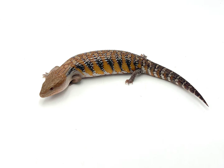 The Swedish Northern Blue Tongue Skink features vivid colors, clean banding, and the calm temperament typical of Northern Blue Tongue Skinks.